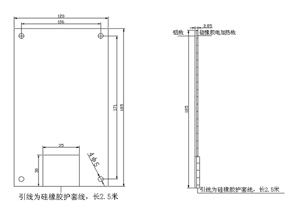 MY-G 系列硅橡膠加熱器采用新工藝新材料,發(fā)熱體采用鎳鉻合金絲,具有發(fā)熱快,熱效率高,使用壽命長(zhǎng)的特點(diǎn),且防潮化。硅橡膠與無(wú)堿玻璃纖維雙重絕緣,使加的絕緣強(qiáng)度列高、散熱均勻、體積小厚度 更薄,使其適合更多的安裝場(chǎng)合。額定功率從有多種規(guī)格供用戶選擇,特殊規(guī)格可以定定制。MY-G-C 系列硅橡膠加熱器, 可作為凝露、溫度控制器的除濕、加熱配 套器件和其他需要加溫的場(chǎng)合的加熱器件,并用鋁板輔助散熱,使加 熱器的熱效率提高,能有效的延長(zhǎng)其使用壽命。可廣泛應(yīng)用高低壓開(kāi) 關(guān)柜、通訊機(jī)柜、環(huán)網(wǎng)柜、箱變等需要溫度控制的場(chǎng)所。